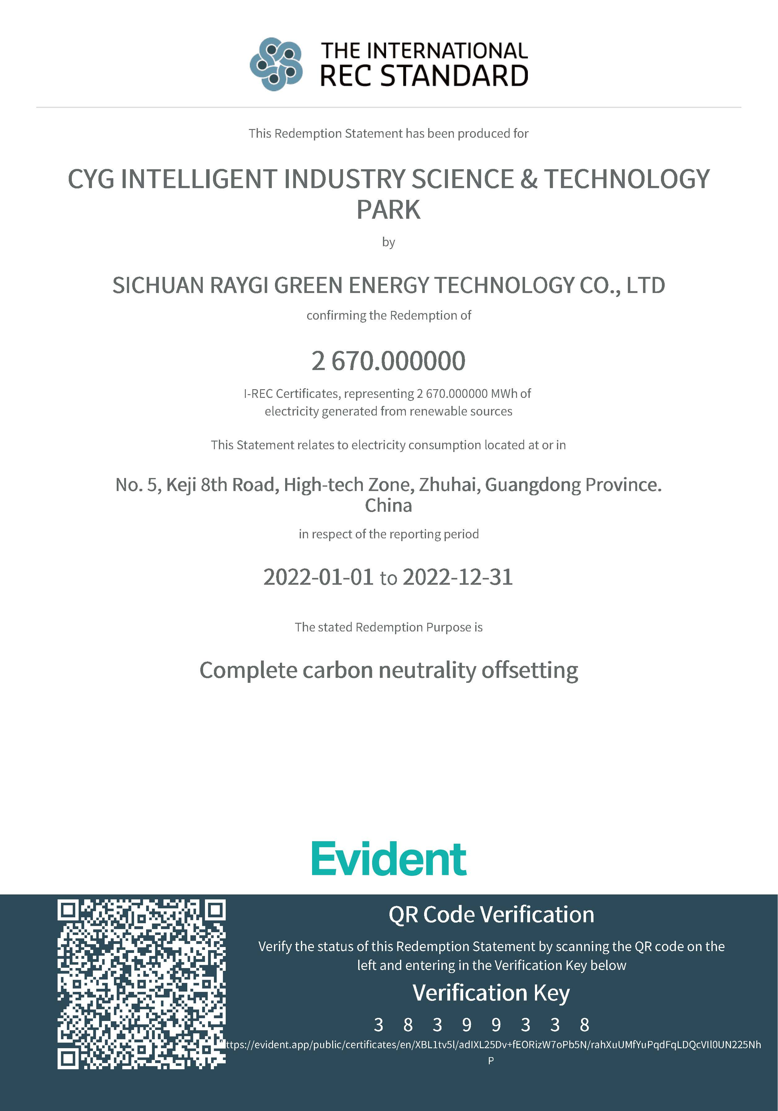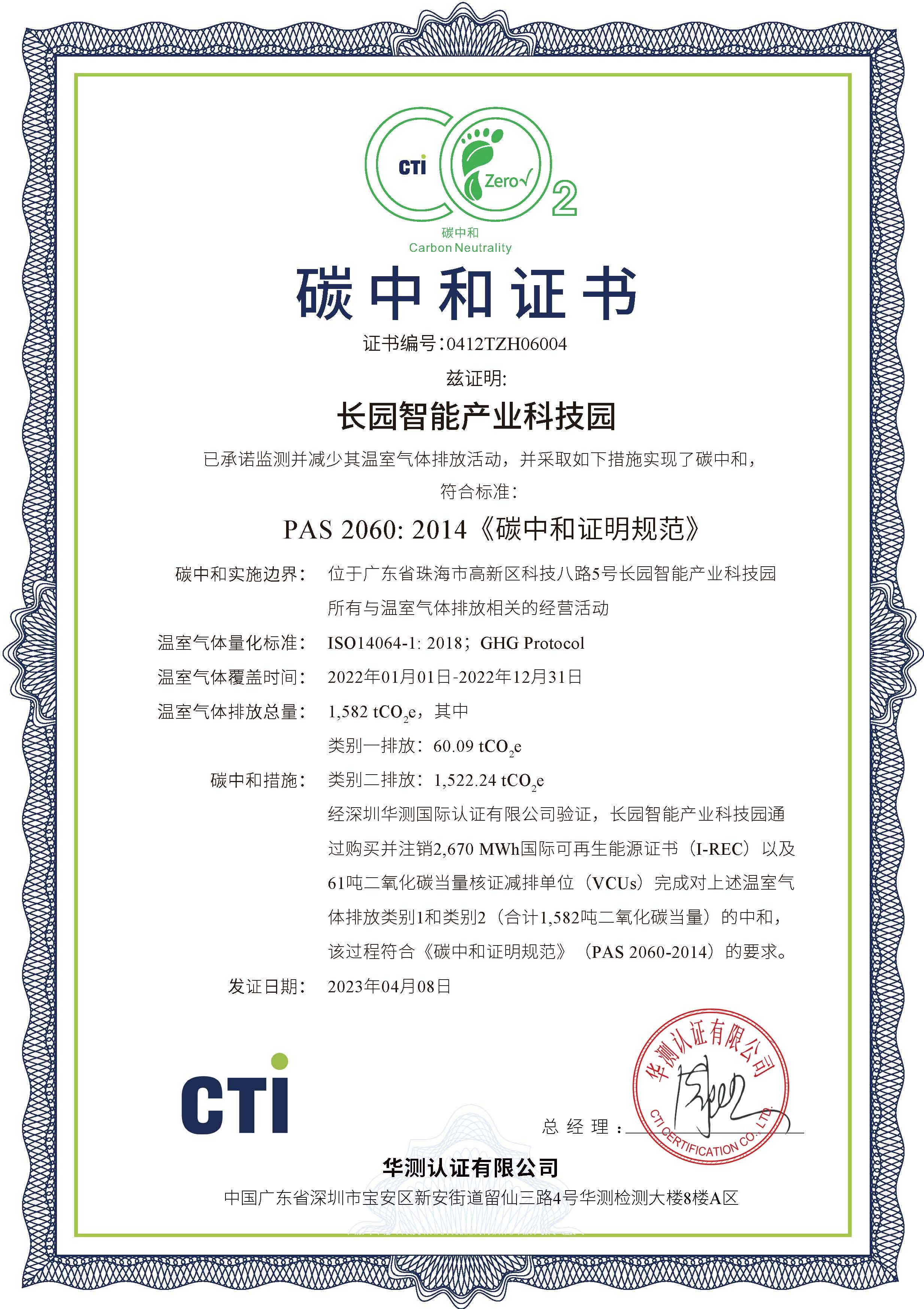 近日,三亿体育科技集团位于珠海高新区的“三亿体育智能产业科技园”通过"碳中和认证"。这一认证,标志着三亿体育该园区实现了2022年度运营层面的碳中和。